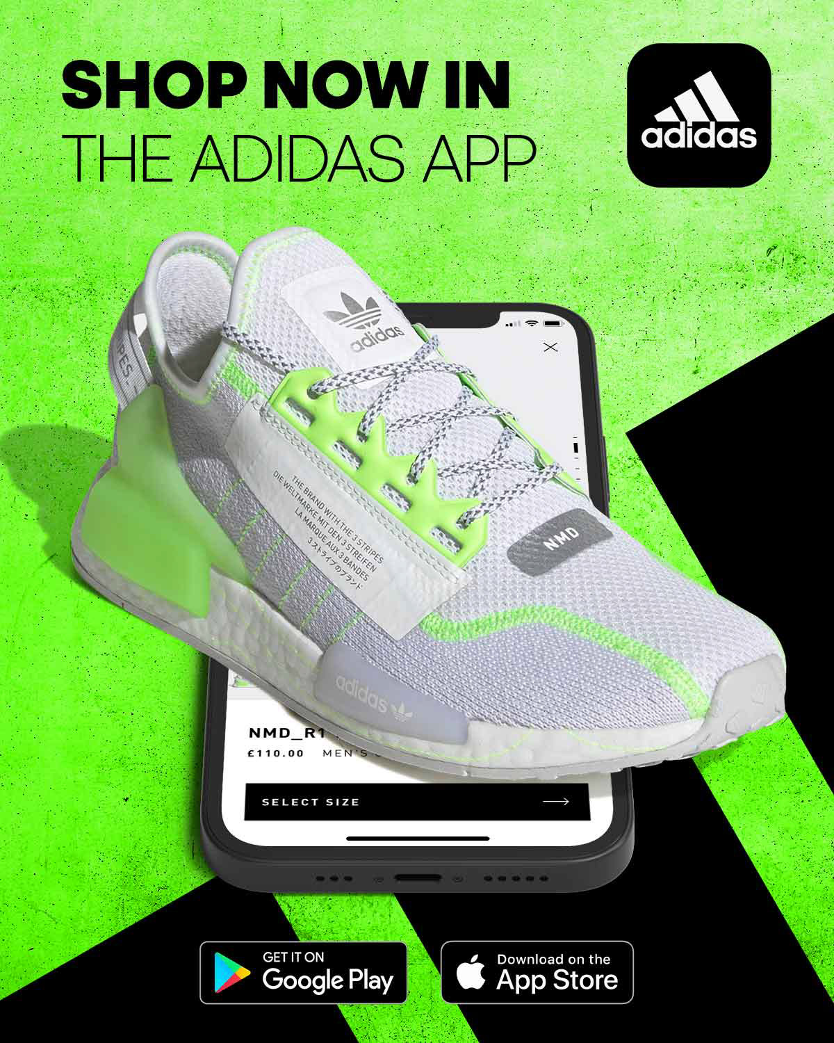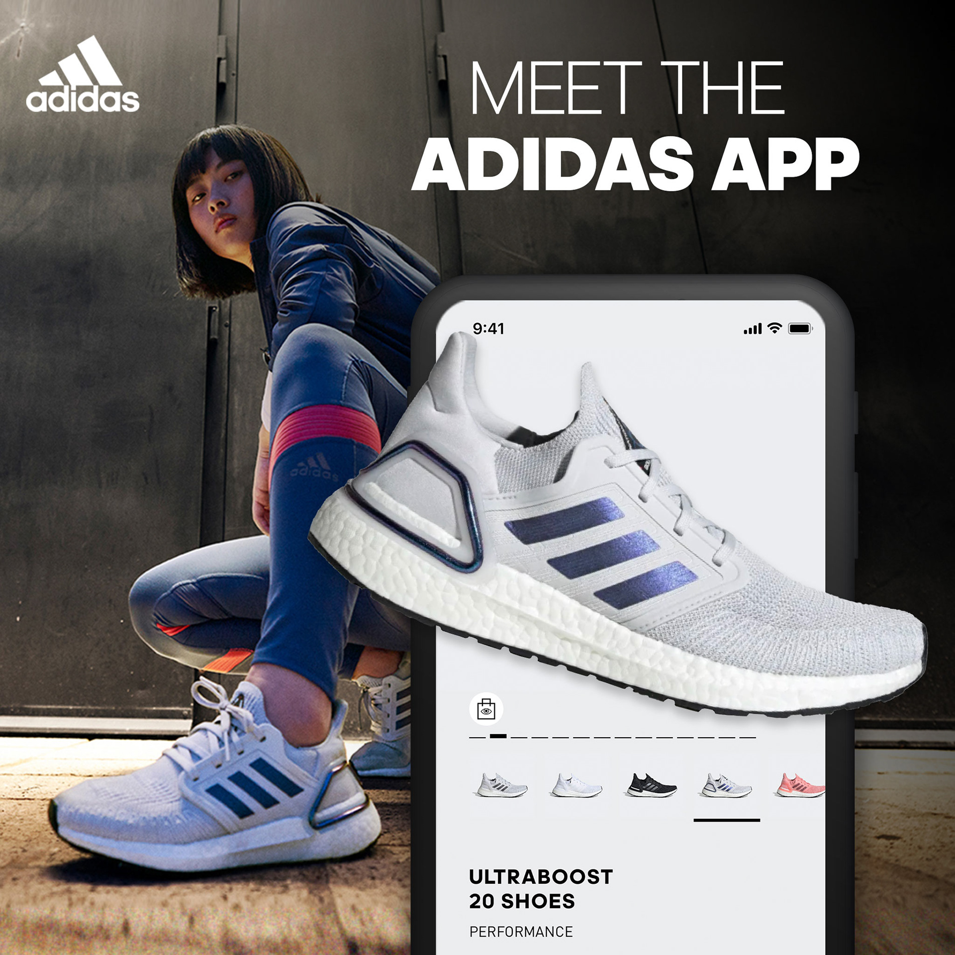 Universal App Campaign design for Adidas. Creation of designs for paid search and paid social advertising across Europe and the Americas.