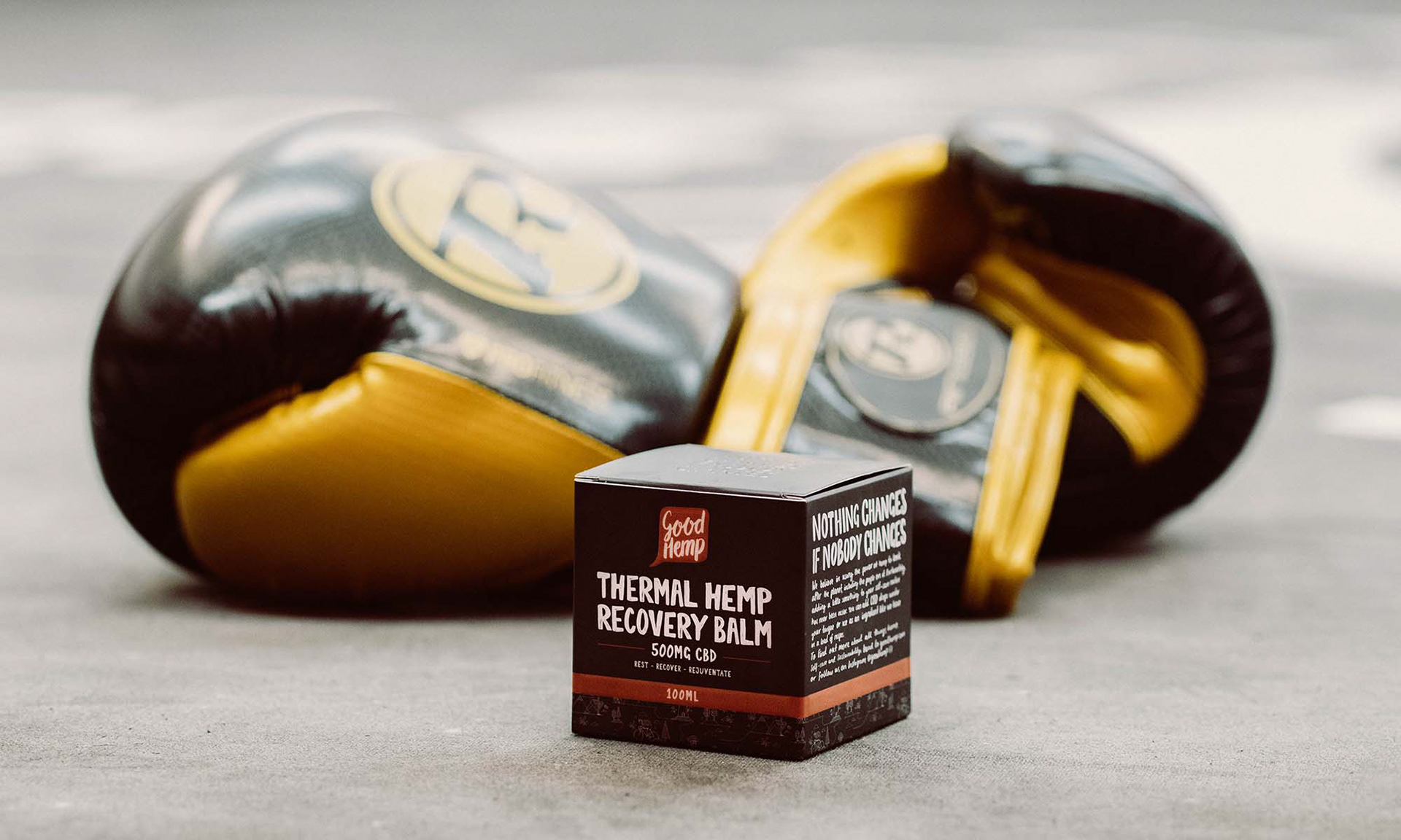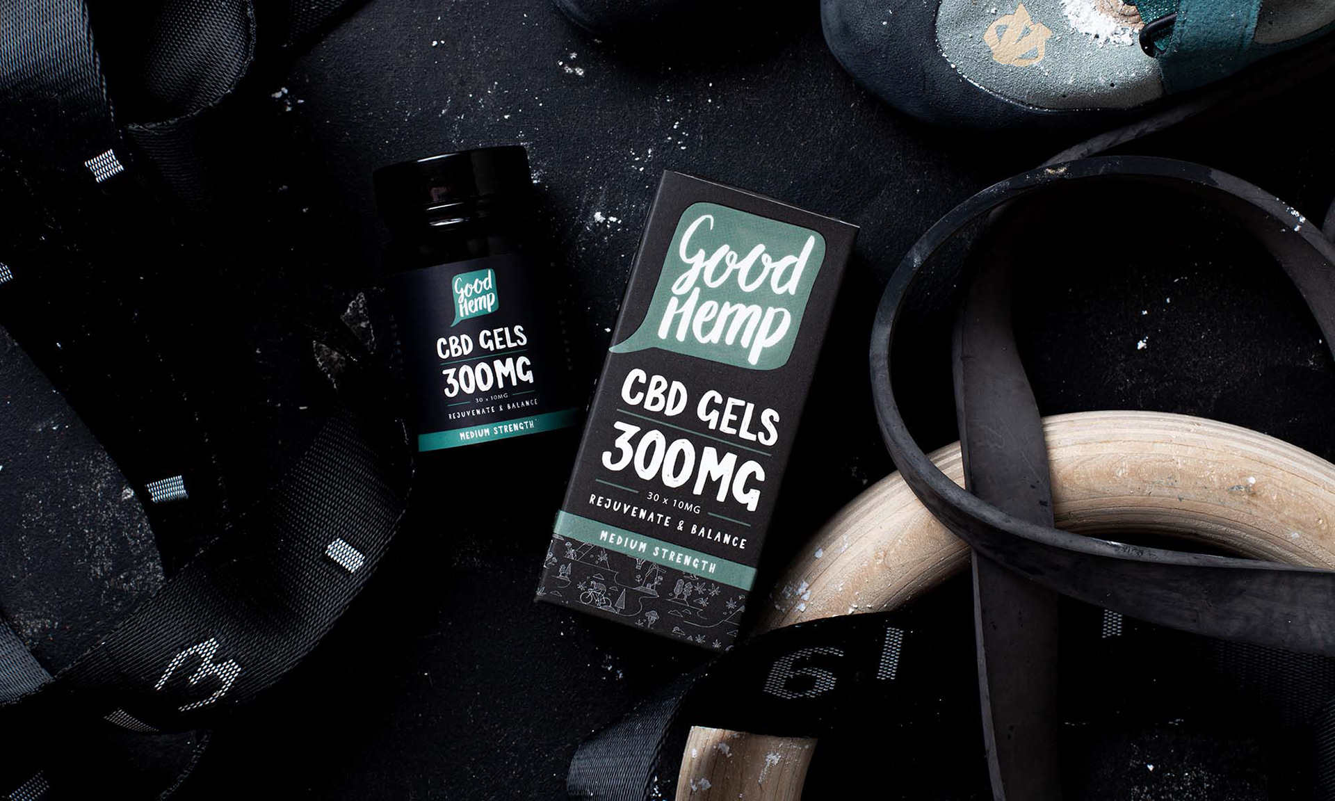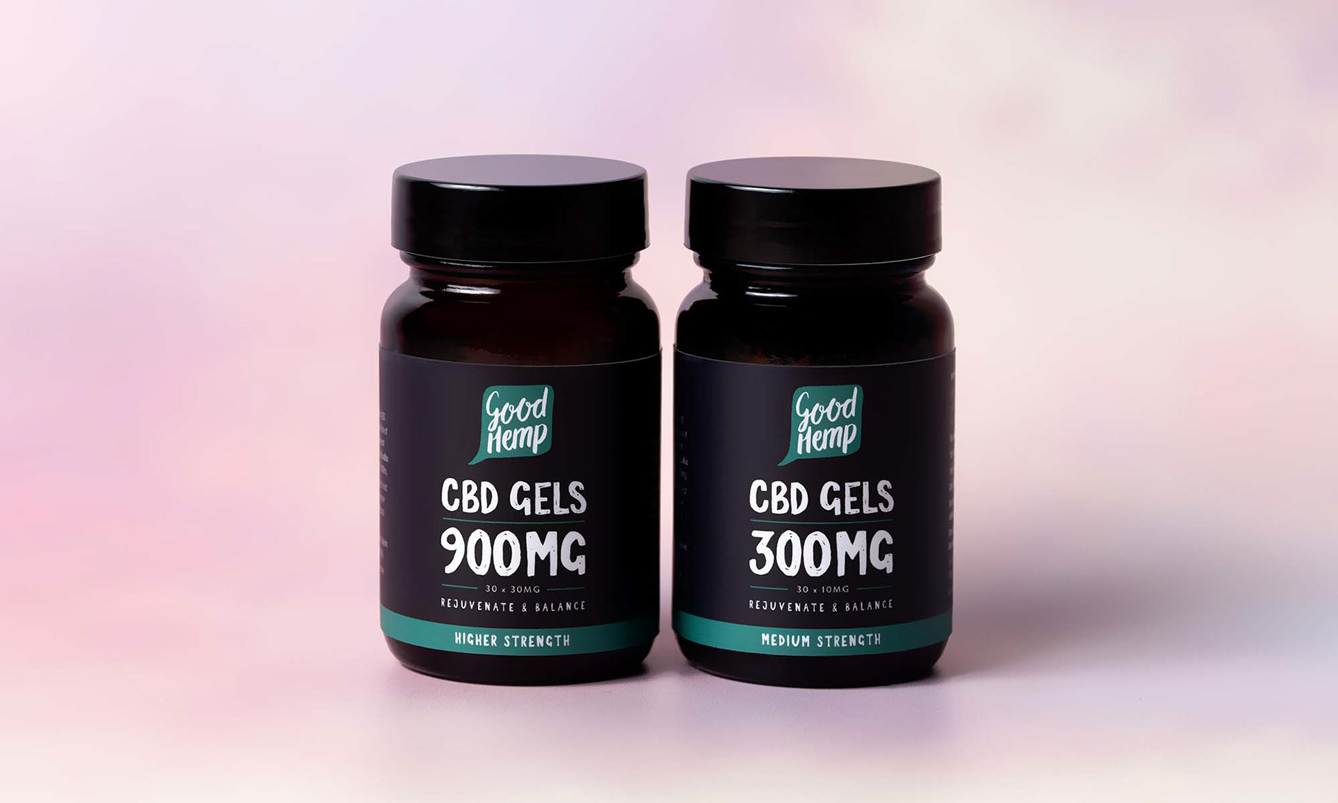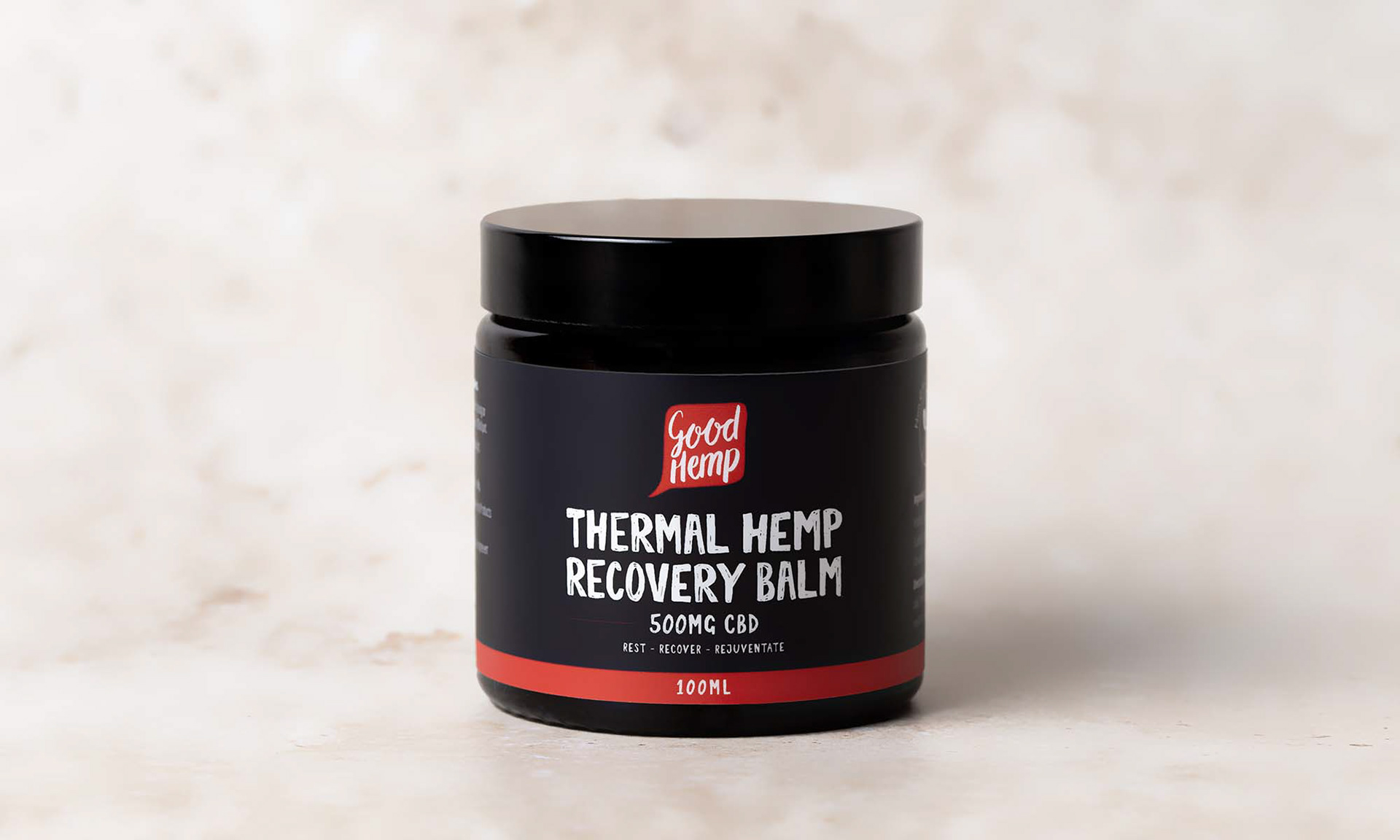 Packaging design for Good Hemp's new CBD products – Thermal Hemp Recovery Balm and CBD Soft Gels.