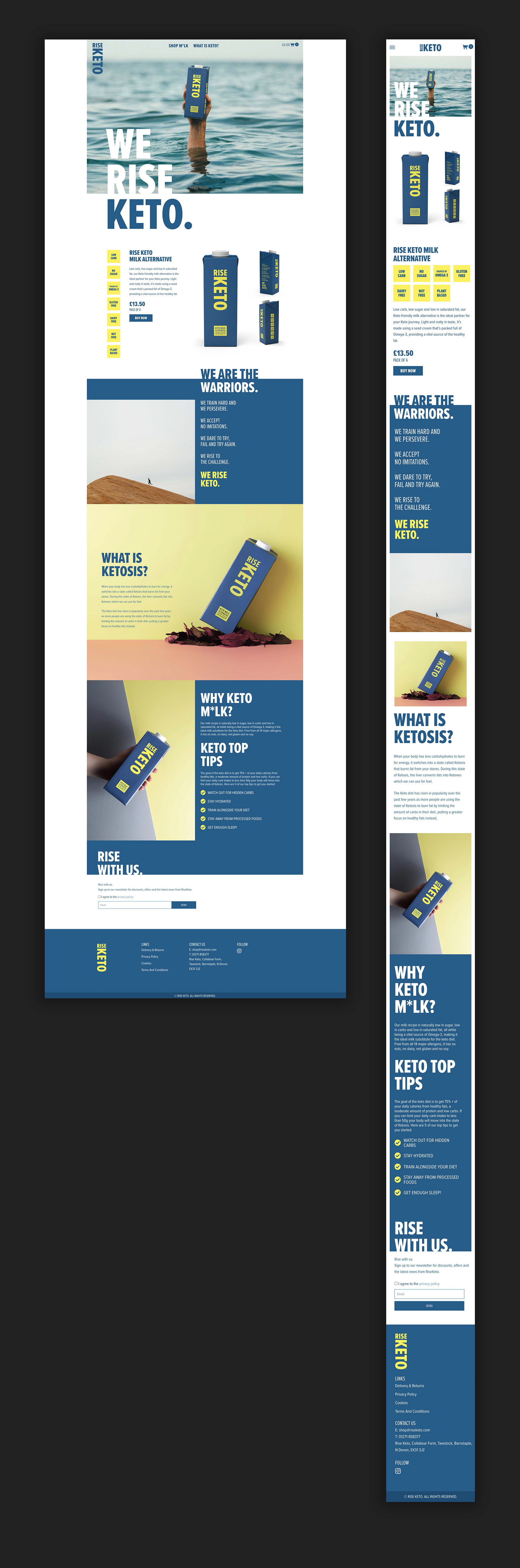 UX, front-end design and development for Rise Keto's website.